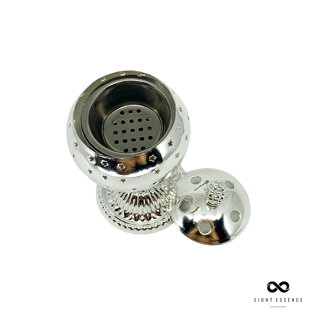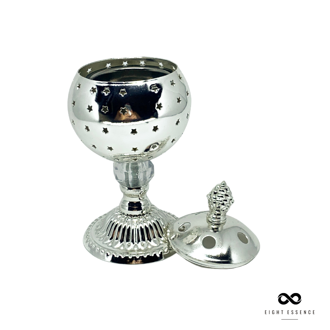 Turíbulo, utilizado em defumação de ambientes, é ideal para queimar incensos, defumação de resinas, carvão e ervas, além de ser um belo item decorativo trazendo estilo e bom gosto para seu ambiente.
